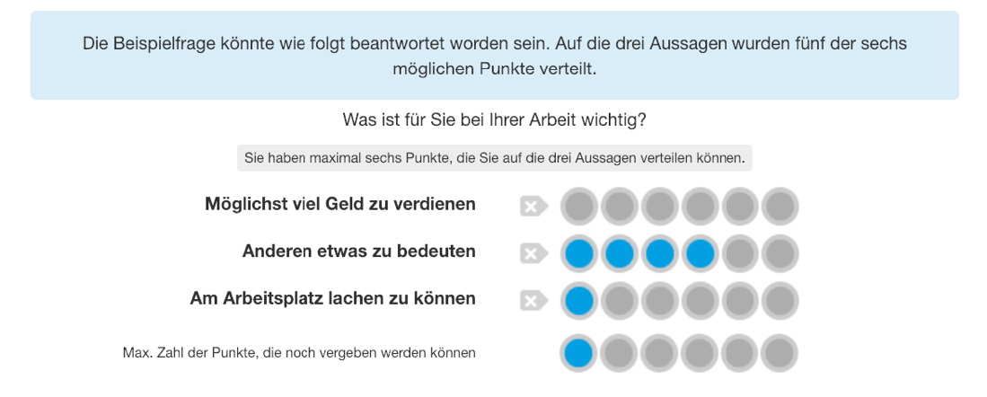 Insgesamt werden demnach 96 Aussagen in Bezug auf die eigenen Motivationen beurteilt. Die 12 Werte nach Schwartz werden somit durch 8 unterschiedlichen Aussagen bewertet.